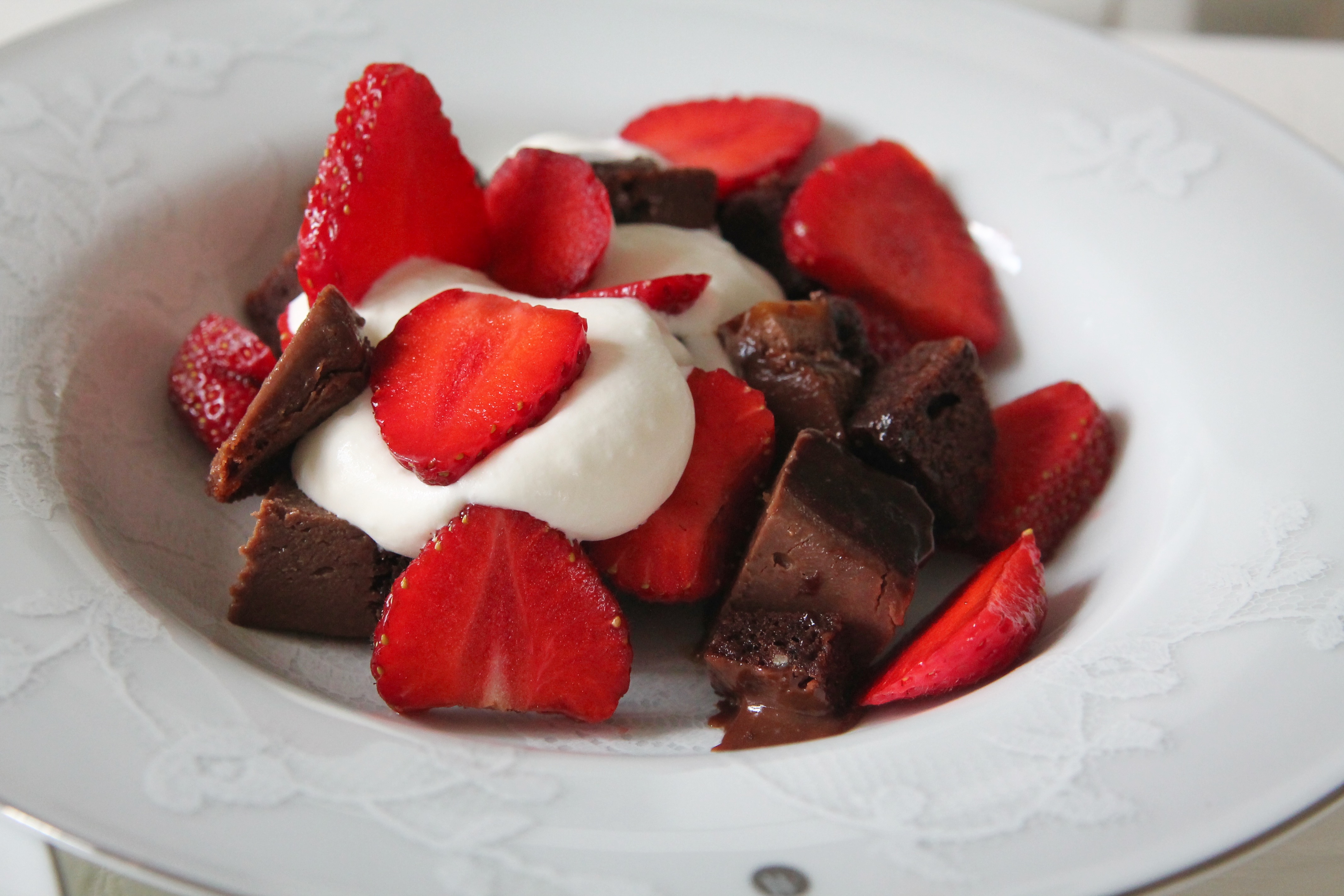 Kladdkakssymfoni med lättvispad grädde & jordgubbar