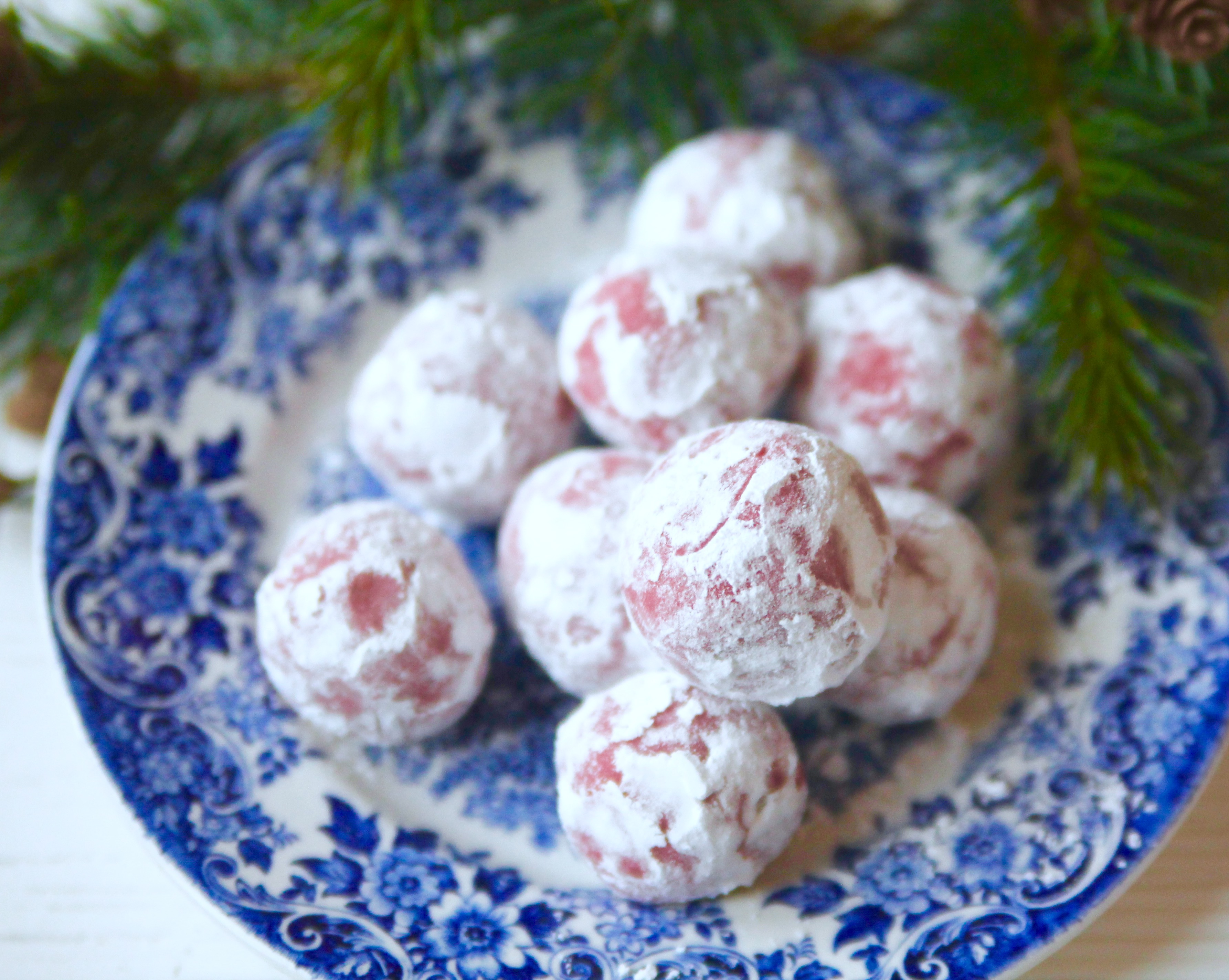 Lyxig hallontryffel rullade i florsocker.