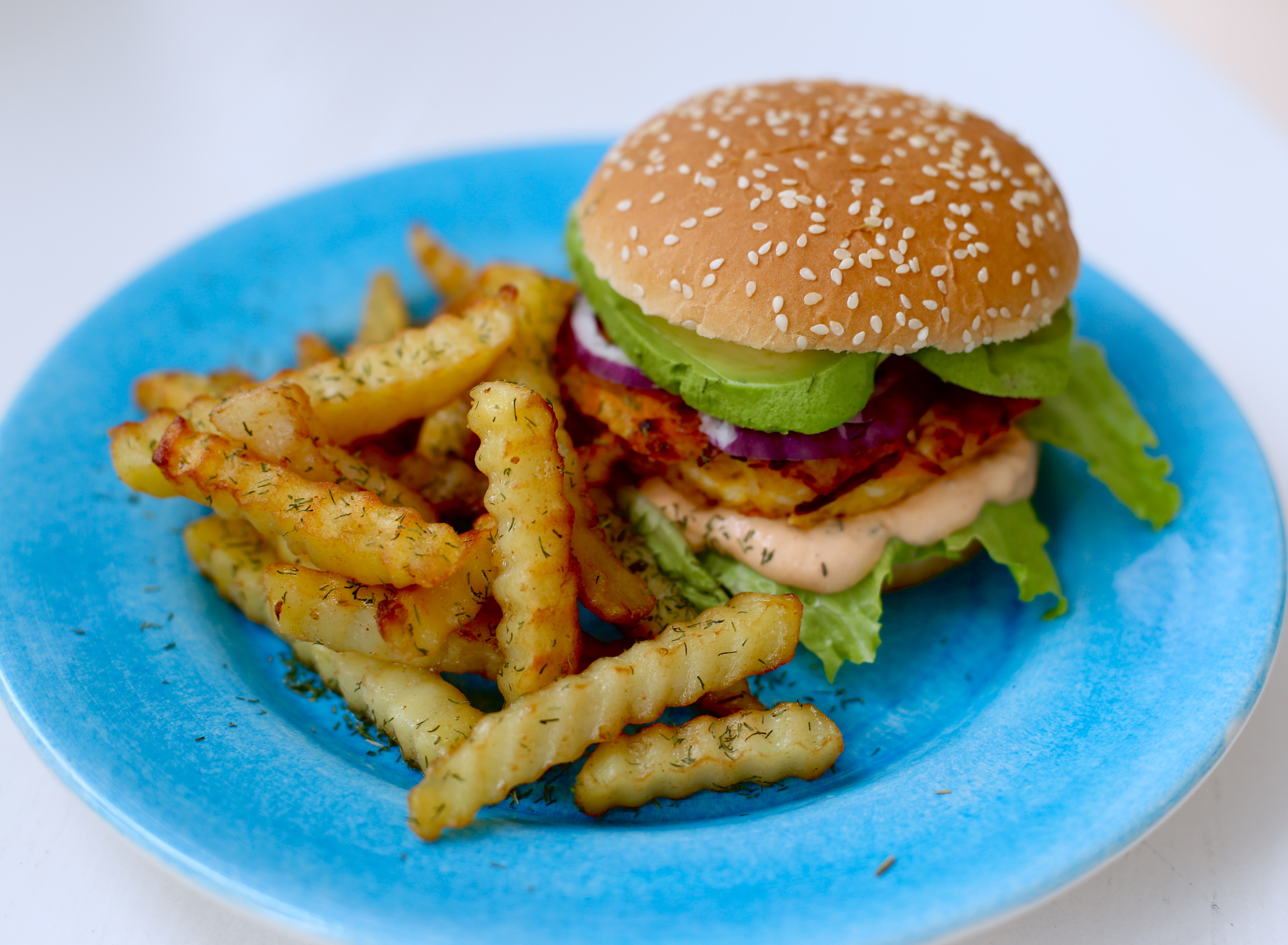 Vi serverade våra med pommes ( jag tycker det är väldigt gott att krydda pommes:en med dillkrydda & salt )