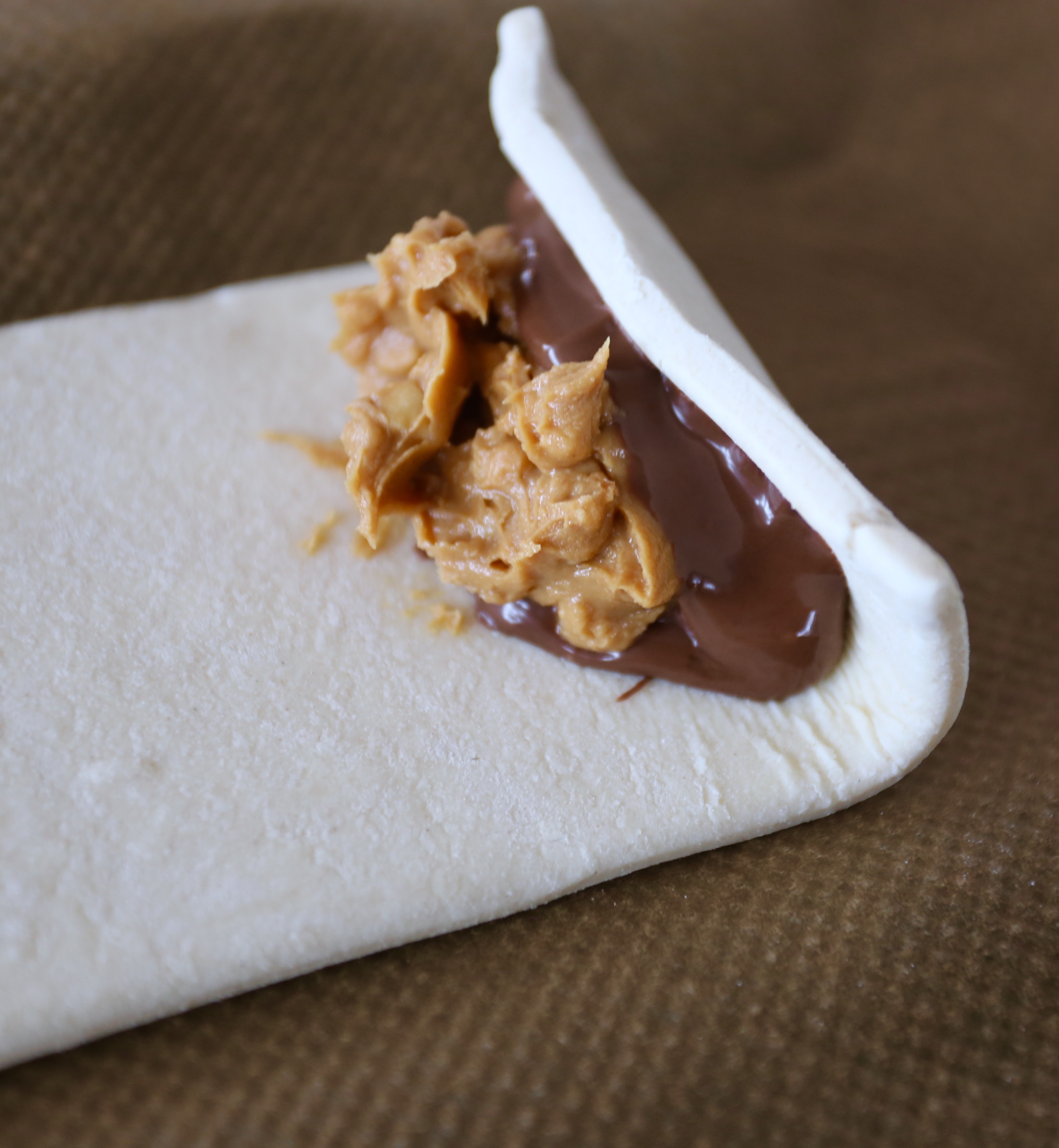 Klicka ut en matsked nutella eller två på långsidan. Och även en klick med jordnötssmör.
