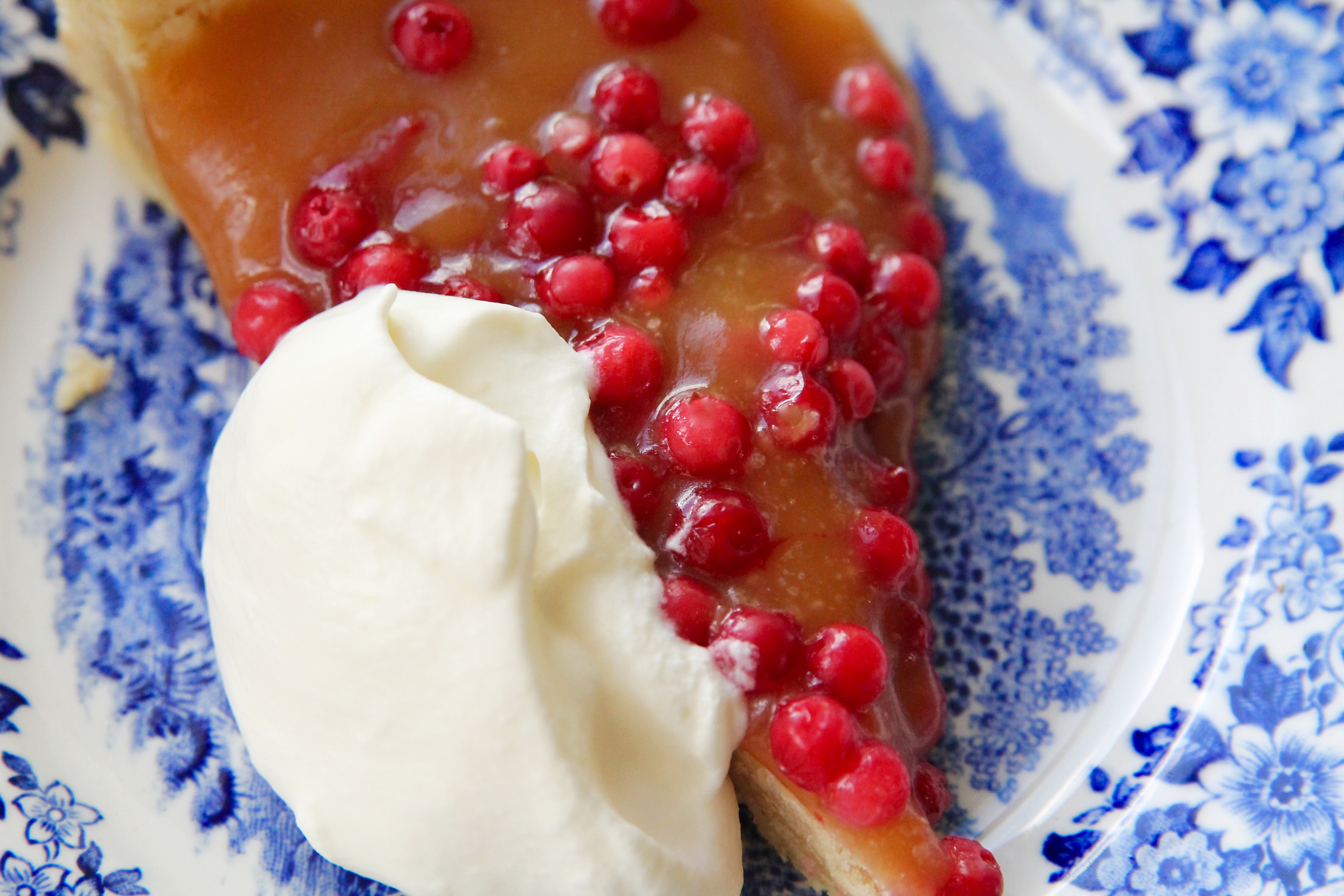 det tar cirka 20 minuter. Ta ut formen och häll i kolafyllningen , toppa med lingon och låt svalna innan servering.