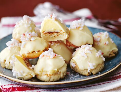 En härlig kondiskaka med en liten polkagris-twist. Provbaka dem vetja, de är busenkla och supergoda! Fina bilden kommer från Ulrika Pousette Det här behöver du till cirka 25 biskiver : 300 gram mandelmassa 1/2 dl socker 1 äggvita ( ett stort ägg eller två små ) Fyllning : 250 gram rumsvarmt smör 3 1/2 … Continued