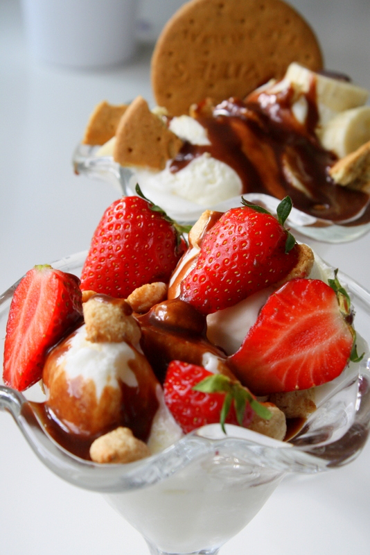 I helgen så blev det glass i stora lass till fikat. Nästan som marängsviss, men utan maränger. Vi gjorde några olika glassskålar- och hade vaniljglass, vispad grädde, banan och jordgubbar , mandelbiskvier och digestivkex. Och så gjorde vi en ljuschokladsås till det, barnen gillar ju tyvärr inte den riktiga chokladsåsen lika mycket. Men klicka här så hittar du receptet … Continued