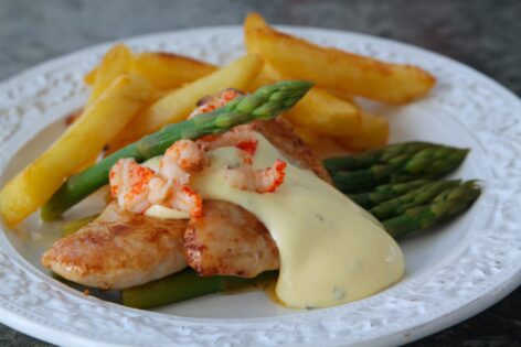 En dag för sent, men vad gör väl det nu i påskledigheten 😉 Måndag: Veganska pannkakor Tisdag: Havets läckerheter Onsdag: Ajvarjärpar med mosTorsdag kryddiga korvstroganoffFredag: Surf and turf Du behöver till 4 personer8 tunna kycklingfileerSmörPommesBearneiesås – recept här (om du vill göra egen)2 knippe grön sparris1 burk med kräftstjärtar Gör så här:Sätt på ugnen och ställ in … Continued